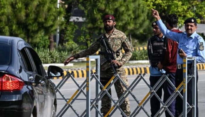 راولپنڈی اور اسلام آباد کی مرکزی شاہراہوں پر پولیس، رینجرز، ایف سی اور دیگر قانون نافذ کرنے والے اداروں کے اہلکار تعینات ہیں۔